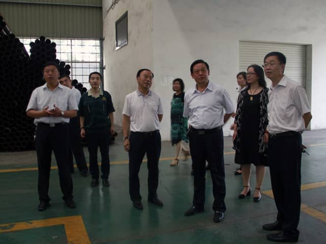 市領(lǐng)導先后參觀了我公司的6A辦公大樓、省級研究中心、體驗館、樣板別墅、集成房屋、設(shè)備生產(chǎn)車間以及鋁型材加工基地。每到一處,市領(lǐng)導都仔細詢問了技術(shù)與生產(chǎn)等相關(guān)問題。