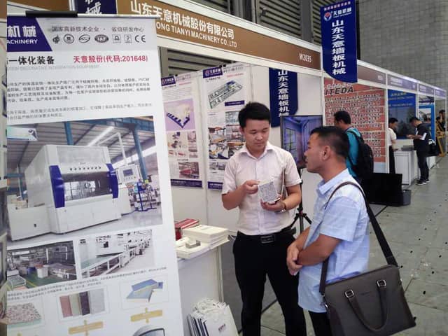 本次展覽會現(xiàn)場人頭攢動,氣氛十分熱烈,天意機械展位也是人氣火爆,前來咨詢鋼結構集成房屋、外墻保溫裝飾一體化板生產線,輕質墻板生產線、復合墻板生產線等產品的客戶絡繹不絕。銷售部李經(jīng)理,熱情的向來訪的每位客戶,介紹了天意綠色建材裝備在鋼結構建筑、裝配式建產業(yè)化中的應用優(yōu)勢。