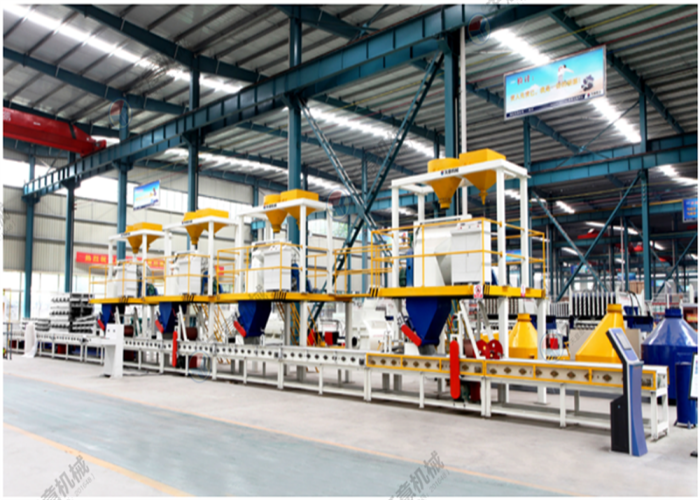 該生產(chǎn)線可生產(chǎn)各種產(chǎn)品,如FSB建筑保溫免拆模板、EPC建筑保溫免拆模板、夾心保溫墻板等,生產(chǎn)線自動化程度高,采用PLC控制系統(tǒng)保證了生產(chǎn)線的穩(wěn)定性,節(jié)省人工,生產(chǎn)效率高,設備配有計量系統(tǒng),結合產(chǎn)品的材料性能使料漿攪拌均勻,能夠很好的將產(chǎn)品復合在一起,從而提高了產(chǎn)品的質(zhì)量。