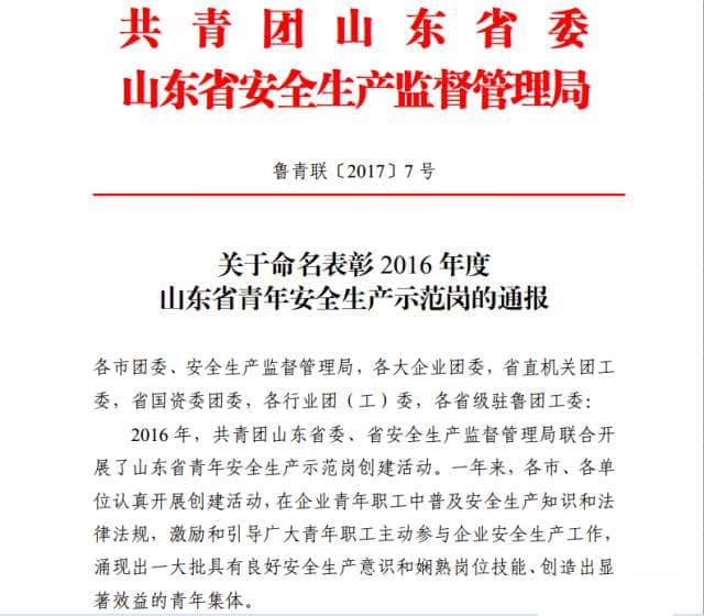 為激勵引導(dǎo)全省廣大青年職工強化安全生產(chǎn)意識,提高安全生產(chǎn)技能,參與安全生產(chǎn)管理,2016年共青團山東省委、山東省安全生產(chǎn)監(jiān)督管理局聯(lián)合開展了山東省青年安全生產(chǎn)示范崗創(chuàng)建活動。山東天意機械股份有限公司新產(chǎn)品班組榮獲2016年度“山東省青年安全生產(chǎn)示范崗”