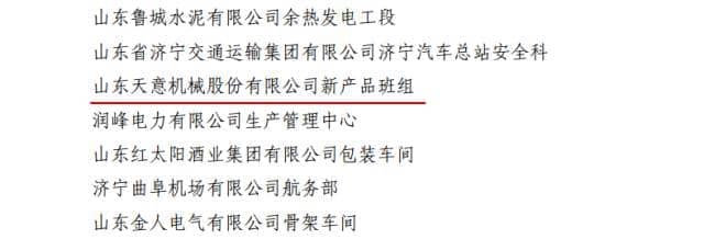 重磅消息:天意機械新產(chǎn)品班組榮獲“山東省青年安全生產(chǎn)示范崗”榮譽稱號